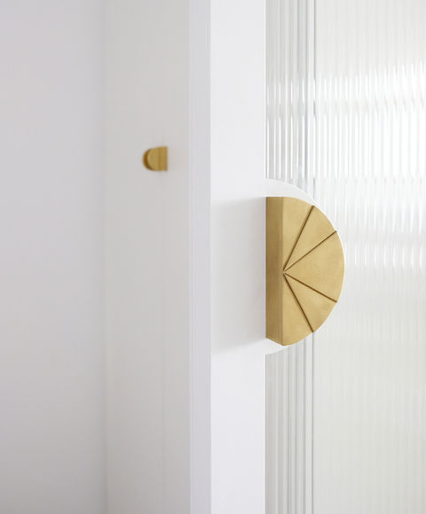 Les poignées et boutons de meubles en laiton massif évoquent une élégance classique et intemporelle.
